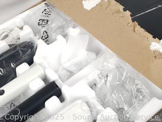 Both dirty from use, white one is missing the power button, the black one works, needs a proper cleaning. Comes with 2 travel cases, 2 charging glasses. As is.