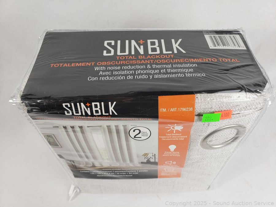 Lot #0202: 2 SunBlk Beige Grommet Panel 52" x 84" Blackout Curtains