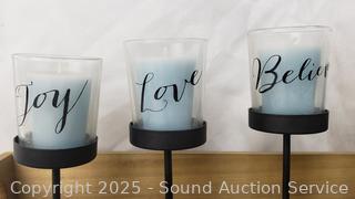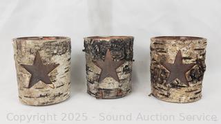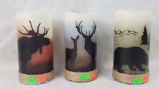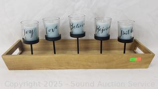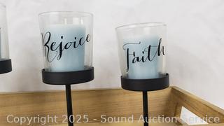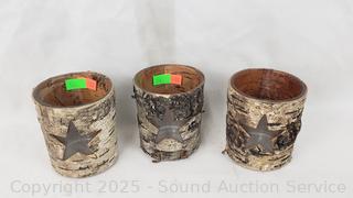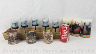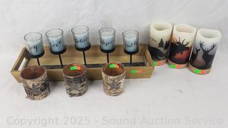 Lot #0146: 3 LED Candles, Bark Votives, Candelabra, Wood Tray