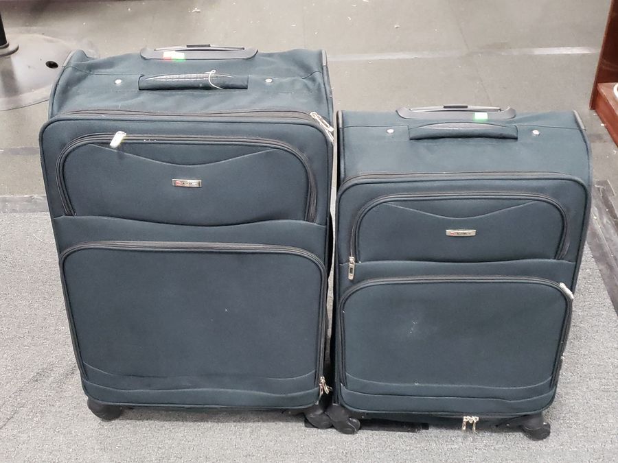 29" H x 18.5" x 11.5" spinner, 25.5" x 16.5" x 10" spinner, 22.5" x 14" x 8" spinner carry on, toiletries & other bag.