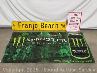 Lot #0203: Franjo Beach, Parking Only & Monster Energy Drink Signs