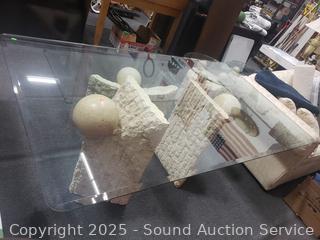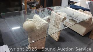 Lot #0006: Sculpted Base Beveled Glass Top Table