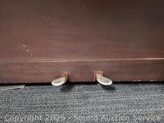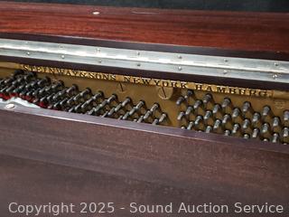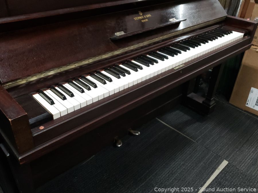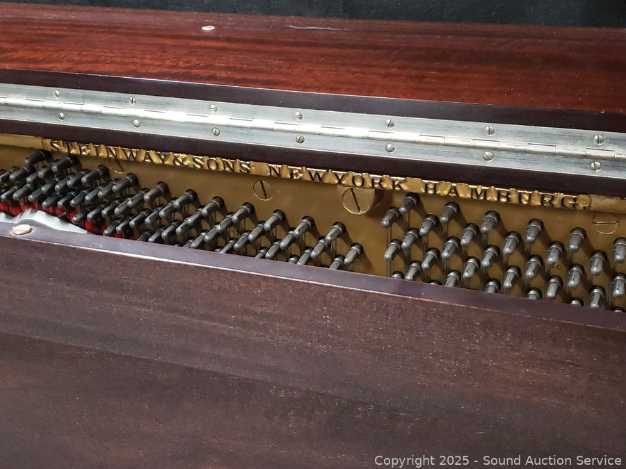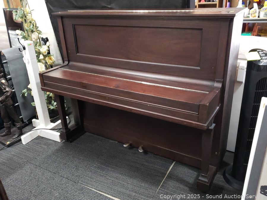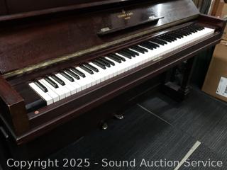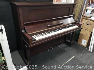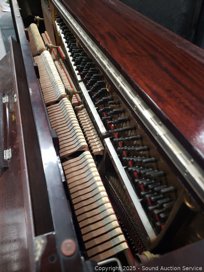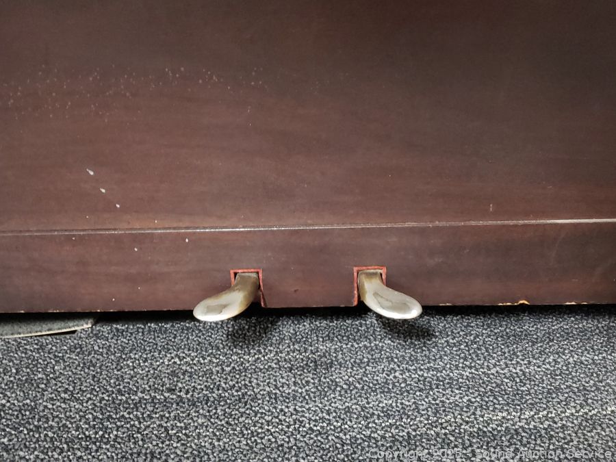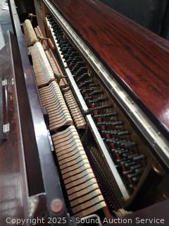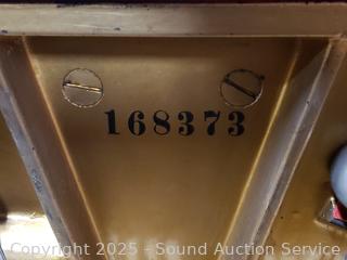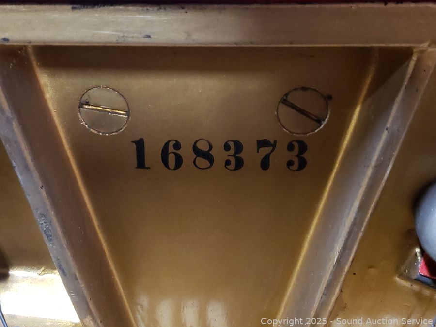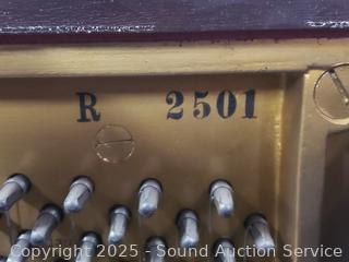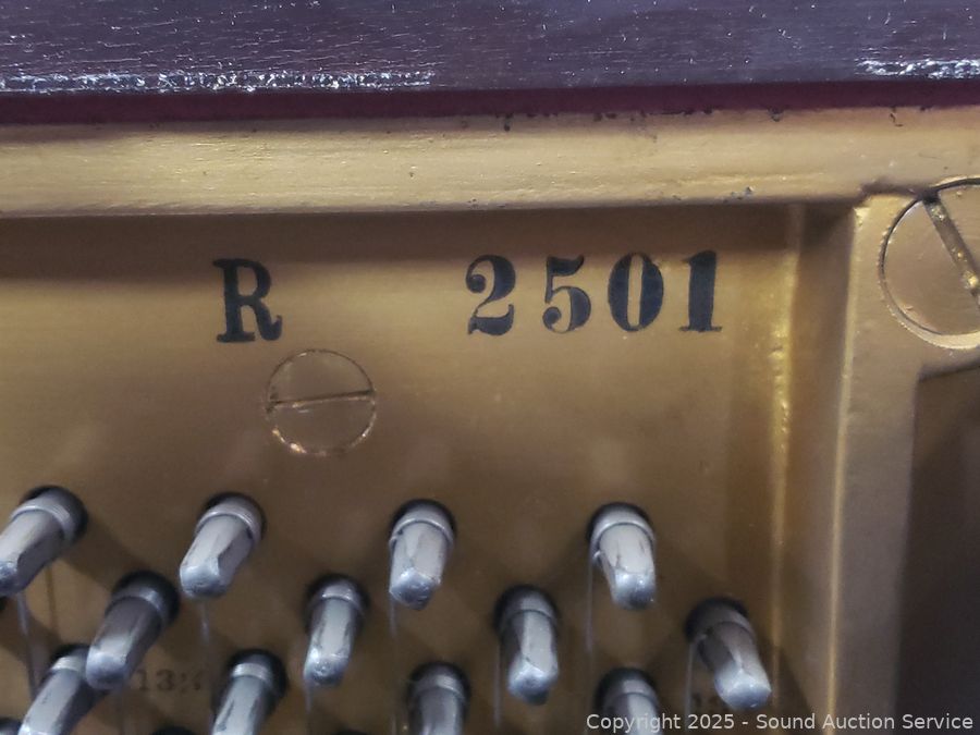 A few minor scuffs, overall great condition. Some crazing in finish. Has a nice sound, everything appears to be functioning as intended. Serial R2501. 49" H x 57" W x 26" D.