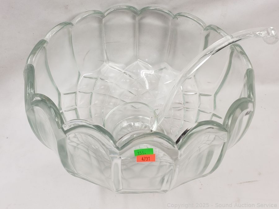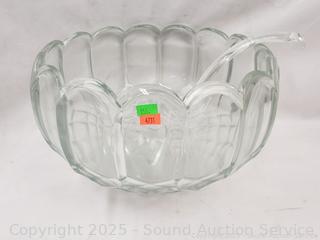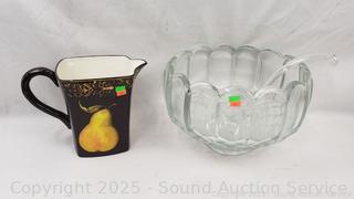 Lot #0314: Thick Glass Punch Bowl w/Ladle & Pear Pitcher