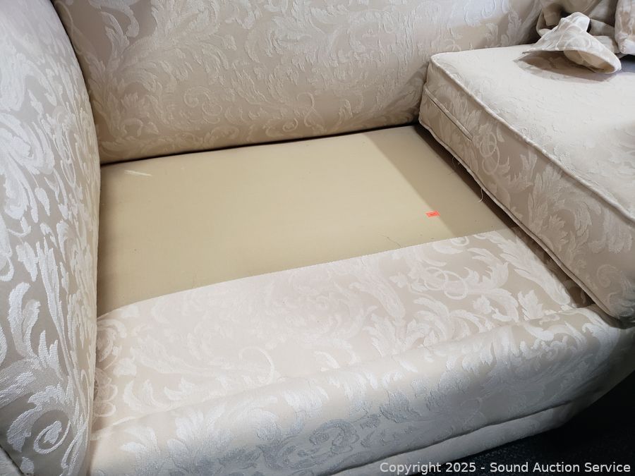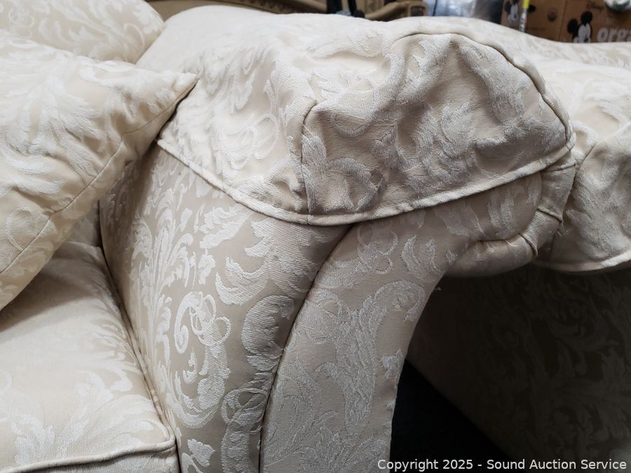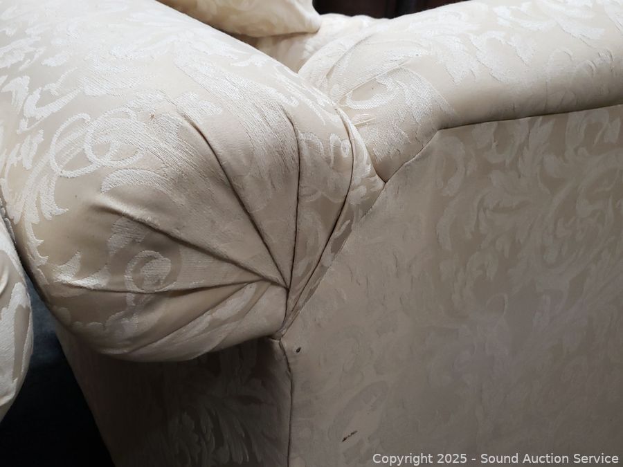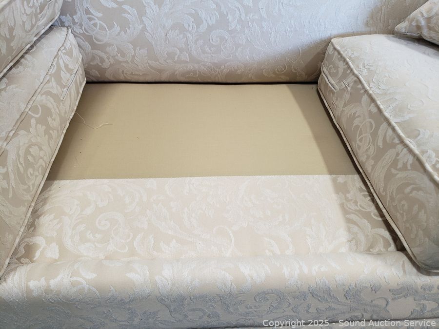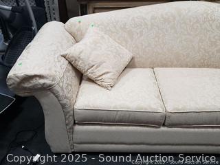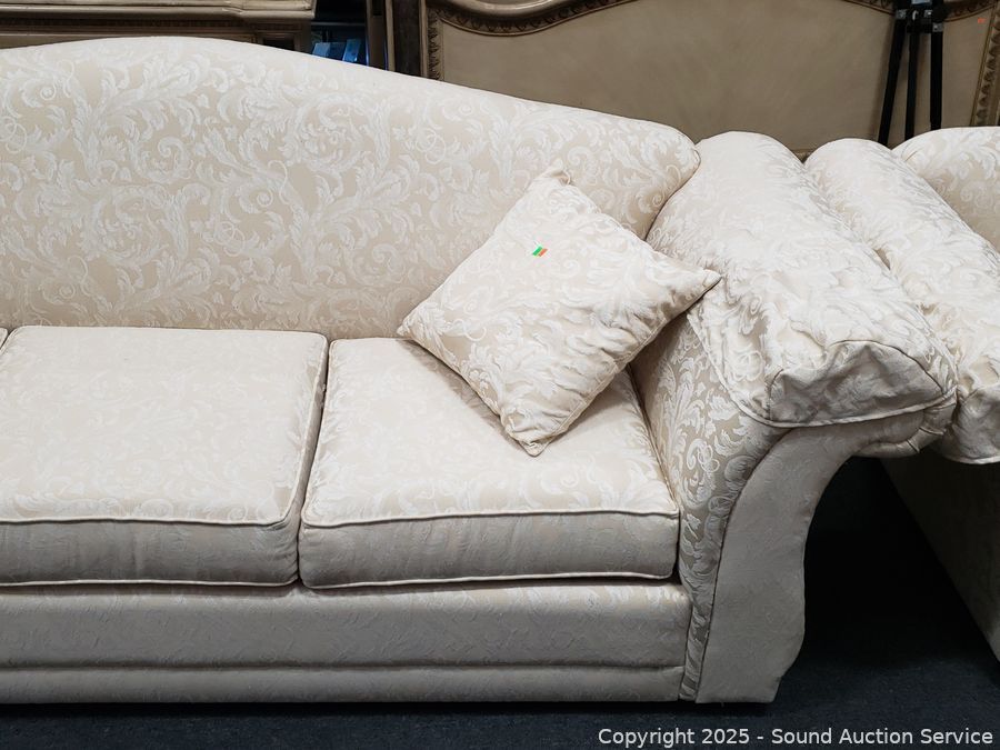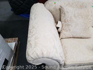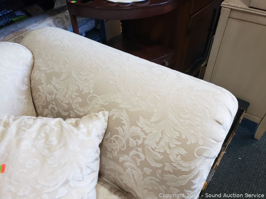 Lot #0009K: Victorian Ivory Upholstered Sofa w/Matching Throw Pillows