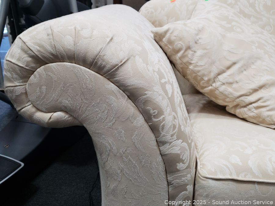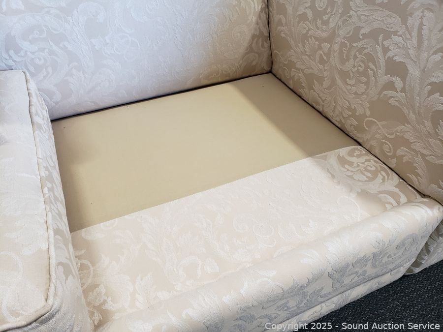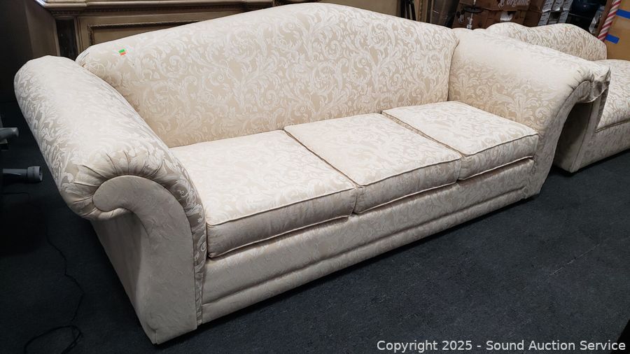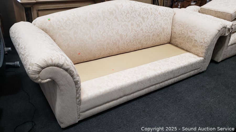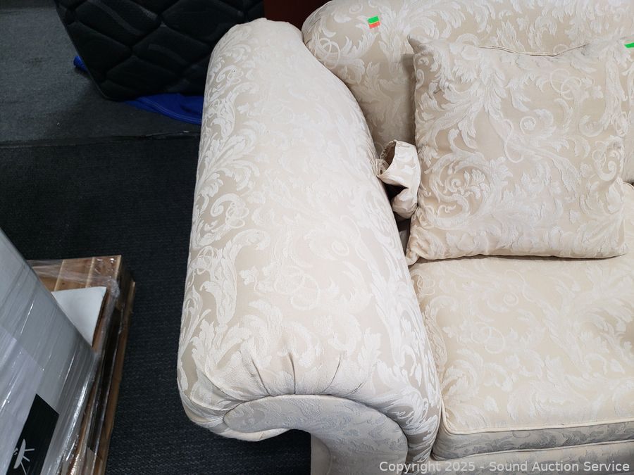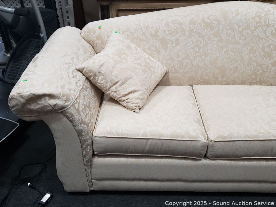 Lot #0009K: Victorian Ivory Upholstered Sofa w/Matching Throw Pillows