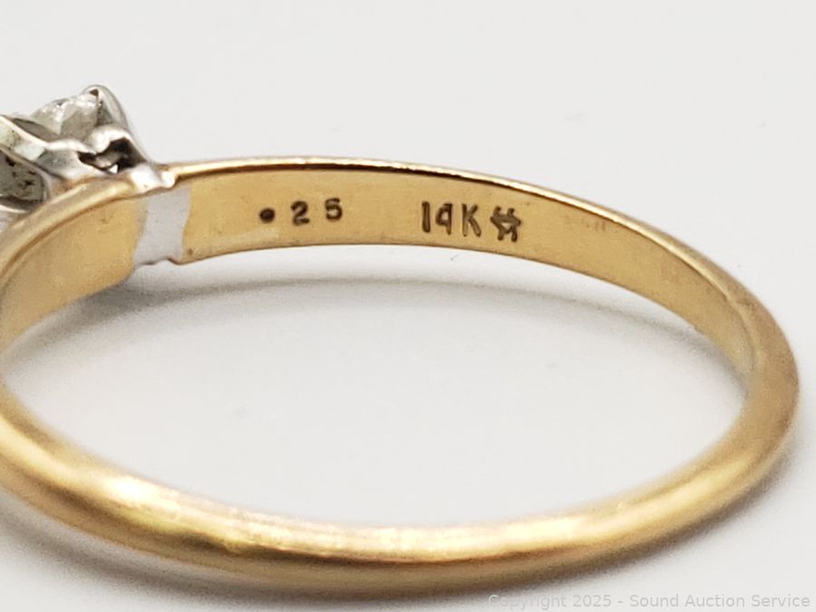 Marked 14K, held on acid test. Stone tested diamond. Approx. 4mm setting. TW:1.93g.