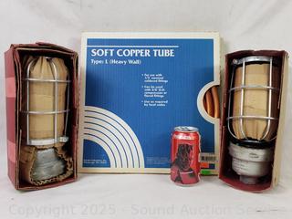 Lot #0312: (2) 1/2"x10ft Soft Copper Tubes & 2 Cadmium Plate Fixtures