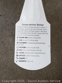 Approx. 22" to 32" tall. The Bailey Red-Twigged Dogwood (Cornus sericea 'Baileyi') is a multi-stemmed deciduous shrub that adds vibrant colors to your landscape all year round. Came from a Nursery in Oregon, all well taken care of.