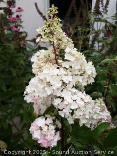 Approx. 42" tall. Strong, upright stems and large cone-shaped flower panicles that stay upright make Berry White® Hydrangea an impressive summer stunner. The flower color starts out white in July then progresses to a jaw-dropping dark pink, beginning at the bottom and developing up to the top of the panicle. The color on Berry White® is truly remarkable, especially in cooler climates with a gradual decrease in fall evening temperatures. Came from a Nursery in Oregon, all well taken care of.