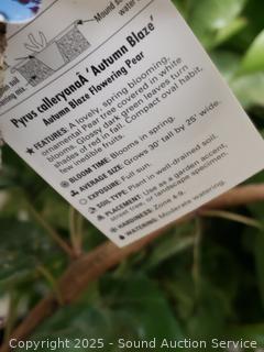 Approx. 43" to 72" tall. Rounded shape with spreading branches. Foliage emerges with a red tint and matures to glossy green. Best cold hardiness of the Callery pears. The Autumn Blaze pear grows about 2' per year, into an upright oval shape, and has a lifespan of about 30 years. Came from a Nursery in Oregon, all well taken care of.