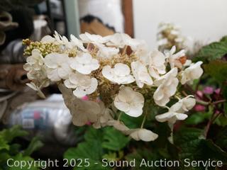 Approx. 34" tall. A profusion of exceptionally large white blooms in summer that quickly age to deep pink. Robust blooms remain upright even after heavy rains. Came from a Nursery in Oregon, all well taken care of.