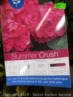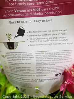 Approx. 22" tall. With a profusion of big raspberry red or neon purple blooms, Summer Crush Reblooming Hydrangea brings floral quality blooms to your garden or patio container. Came from a Nursery in Oregon, all well taken care of.