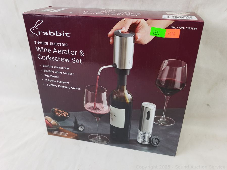 Lot #0127: 5pc Rabbit Electric Wine Aerator & Corkscrew Set