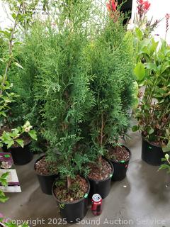 Lot #0195: 6 Live Potted Skybound Arborvitae Shrubs
