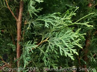 Approx. 36" to 45" tall. A stately columnar evergreen with exceptional cold hardiness. The narrow upright form with dark green foliage is excellent for use in mass plantings. Skybound Arborvitae will grow to be about 18 feet tall at maturity, with a spread of 5 feet. Came from a Nursery in Oregon, all well taken care of.