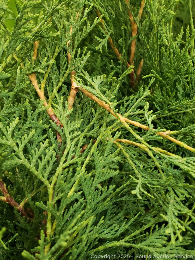 Approx. 36" to 45" tall. A stately columnar evergreen with exceptional cold hardiness. The narrow upright form with dark green foliage is excellent for use in mass plantings. Skybound Arborvitae will grow to be about 18 feet tall at maturity, with a spread of 5 feet. Came from a Nursery in Oregon, all well taken care of.
