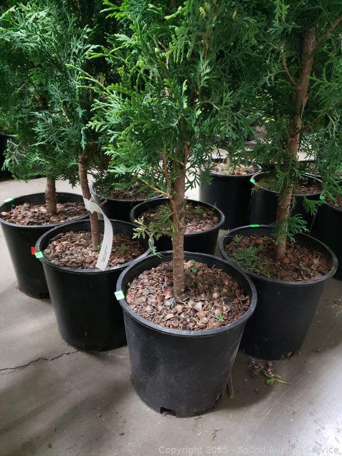 Lot #0212: 6 Live Potted Skybound Arborvitae Shrubs