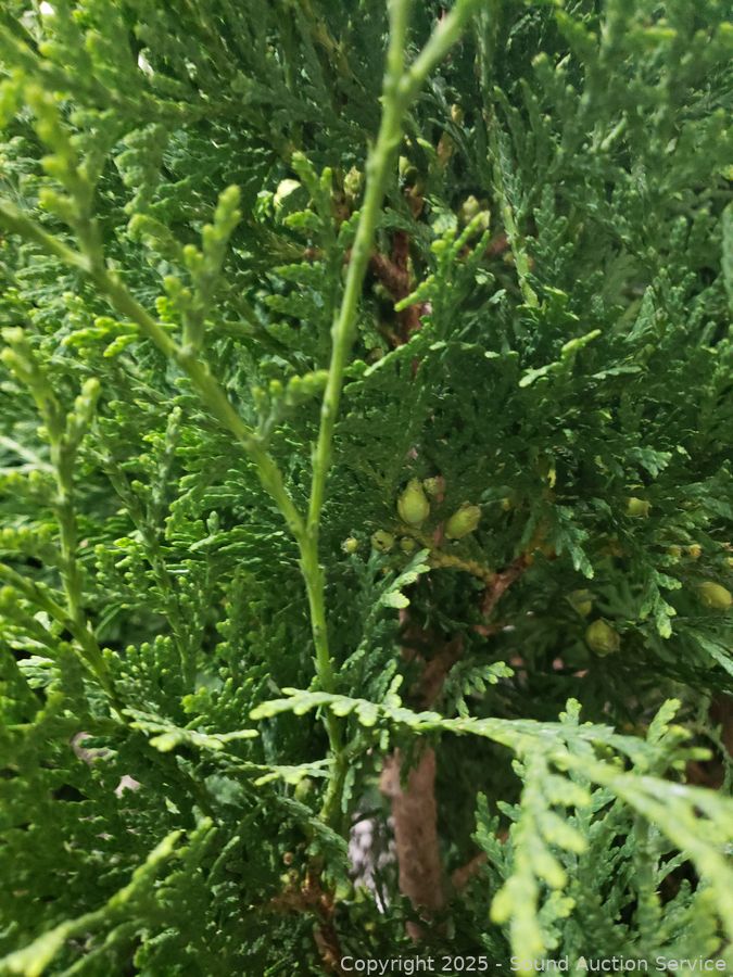 Approx. 36" to 45" tall. A stately columnar evergreen with exceptional cold hardiness. The narrow upright form with dark green foliage is excellent for use in mass plantings. Skybound Arborvitae will grow to be about 18 feet tall at maturity, with a spread of 5 feet. Came from a Nursery in Oregon, all well taken care of.