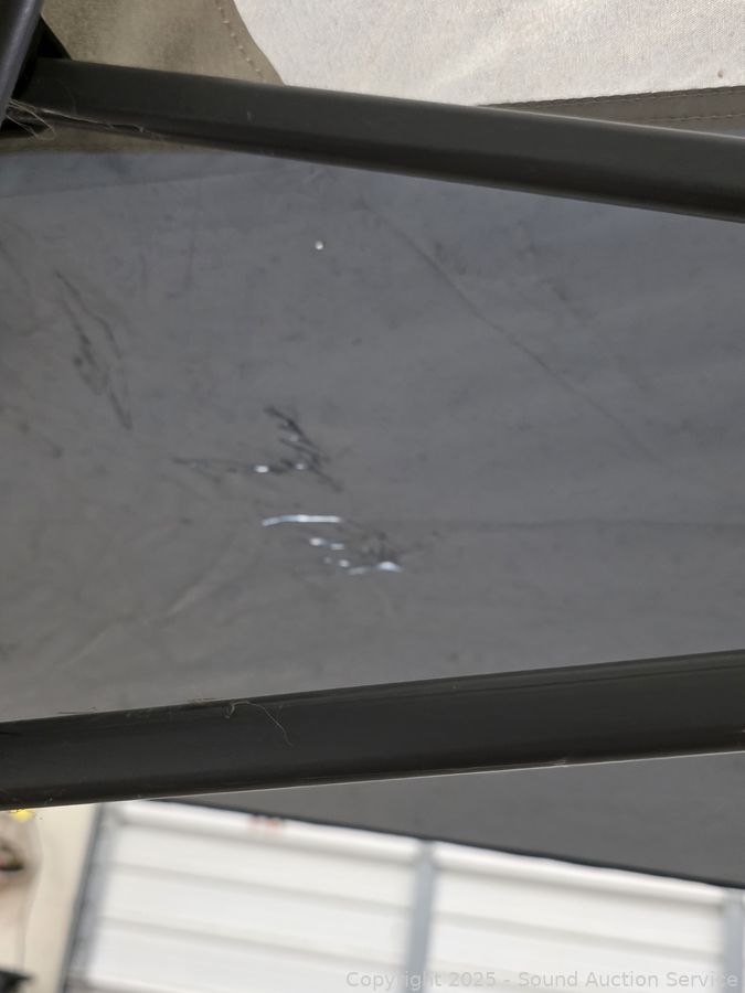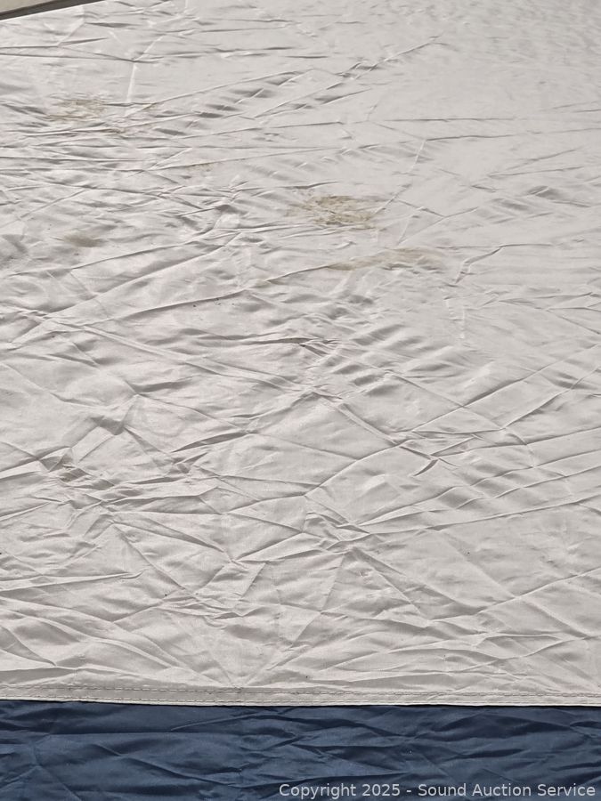 Several small holes in the canopy, dirty canopy top. Refer to photos for more details. 9.5" H x 13ft x 13ft.