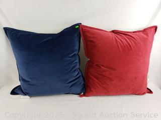 Lot #0008: Down Fill Blue & Red Plush 20" Throw Pillows
