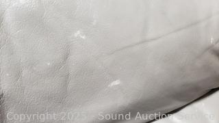 Some minor scuffs, dirty spots, could use a proper conditioning. Approx. 31" H x 84" W x 36" D x 16" to seat. Matches the next lot.