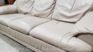 Lot #0005: Leather? Beige Sofa