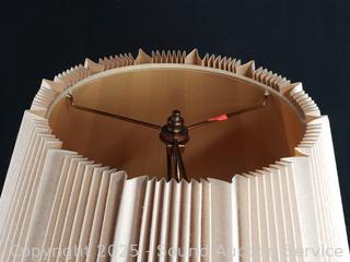 Looks like a Stiffel but don't see any makers marks, labels. Appears to be functioning as intended. 30" H x 17" Dia. shade.