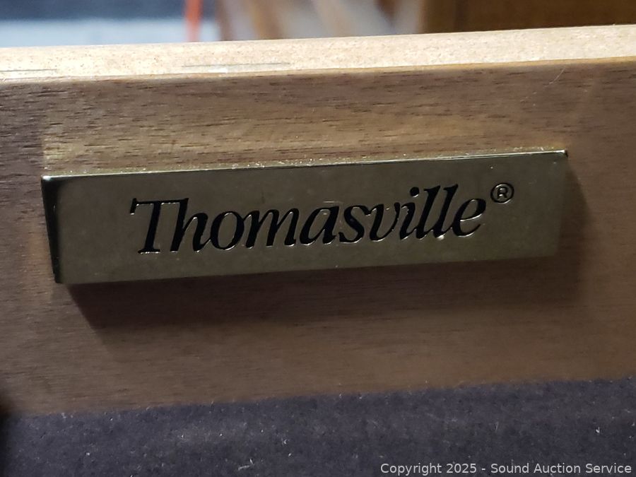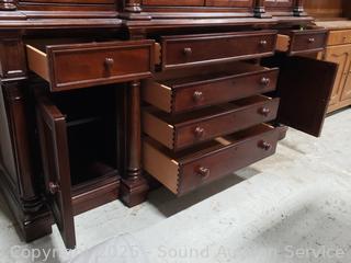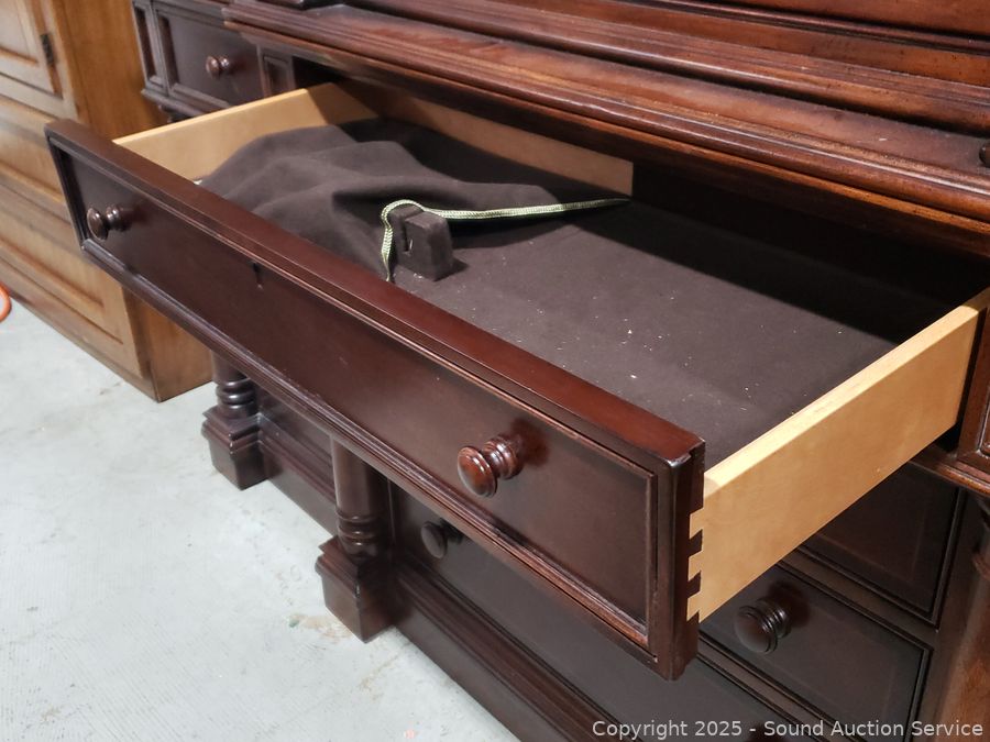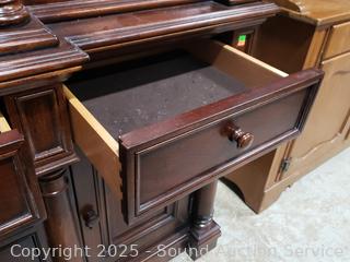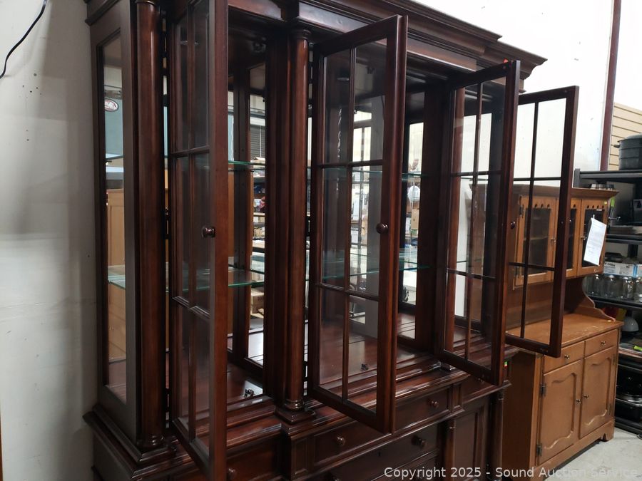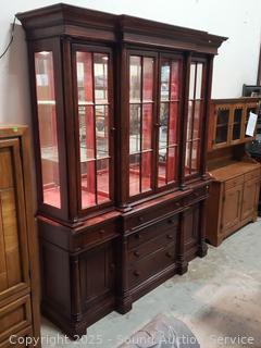 Lot #0011: Thomasville Cherry Lighted Mirrored Hutch