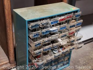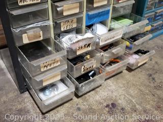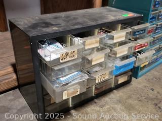 Drawers are are labeled. Refer to photos for lot contents. 9" to 18.25" H x 13.25" to 14.25" W x 6" to 6.25" D.