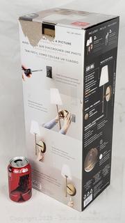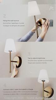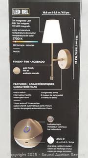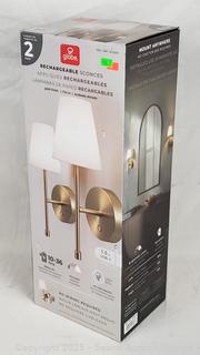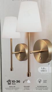 Lot #0113: 2pk Globe Gold Finish Rechargeable Wall Sconces