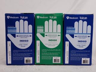 Lot #0257: 3pk Medicom Vulcan Nitrile Exam Gloves S:(2)L,(1)XL