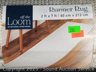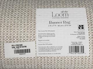 Lot #0232: Off the Loom 2ft x 7ft Vera-Loop Cream Runner Rug