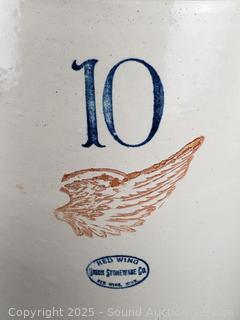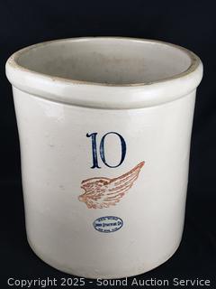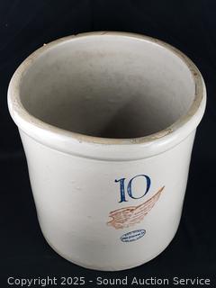 Lot #0009: 10 Gallon Redwing Stoneware Crock