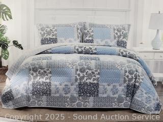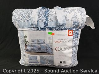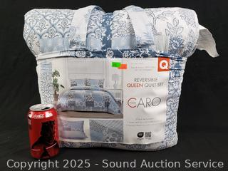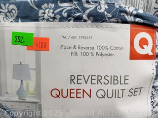 Lot #0252: 3pc Caro Reversible Queen Quilted Comforter