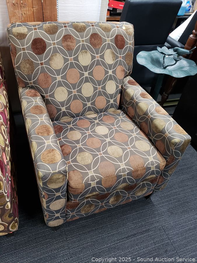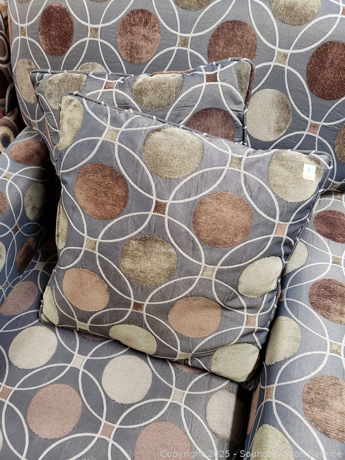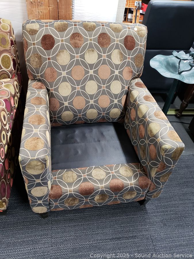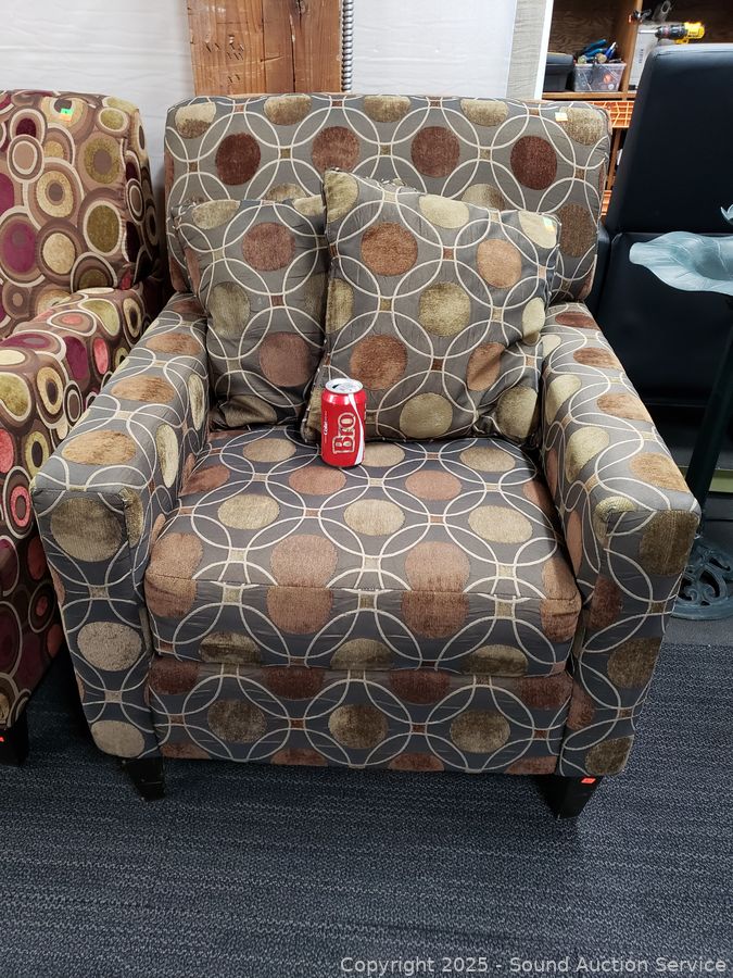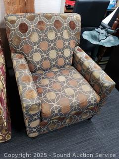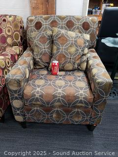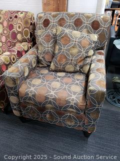 Lot #0007: Circle Print Armchair w/2 Matches Throw Pillow