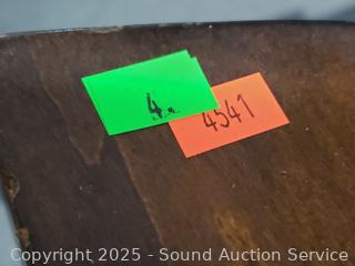 Has a damaged back right corner, some minor scuffs. 33" H x 41" W x 12.5" D.
