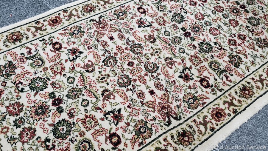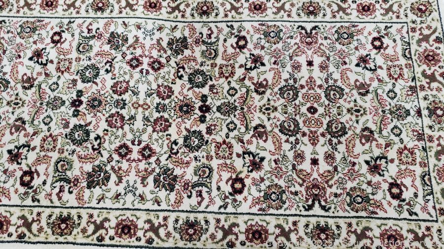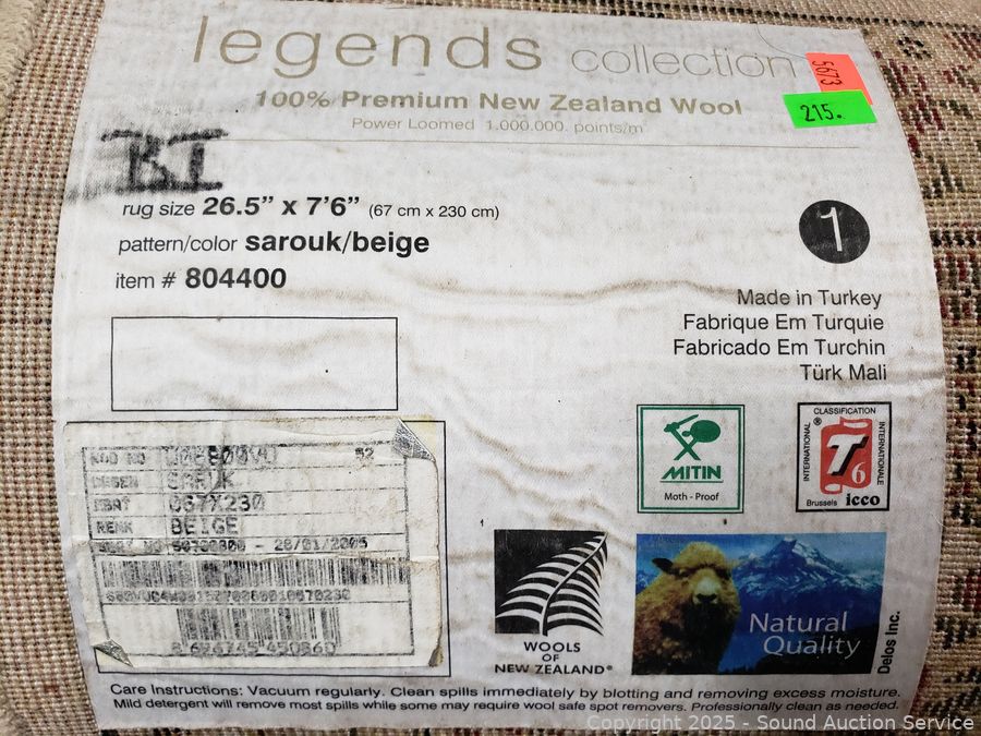 Lot #0215: Legends Sarouk/Beige 100% Wool 26.5" x 7'6" Runner Rug