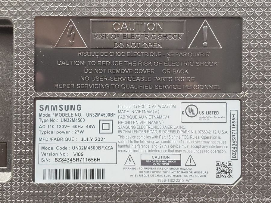 Model UN32M4500BF. Has power, appears to be functioning as intended. Comes with remote, manual, HDMI cord, power cord.