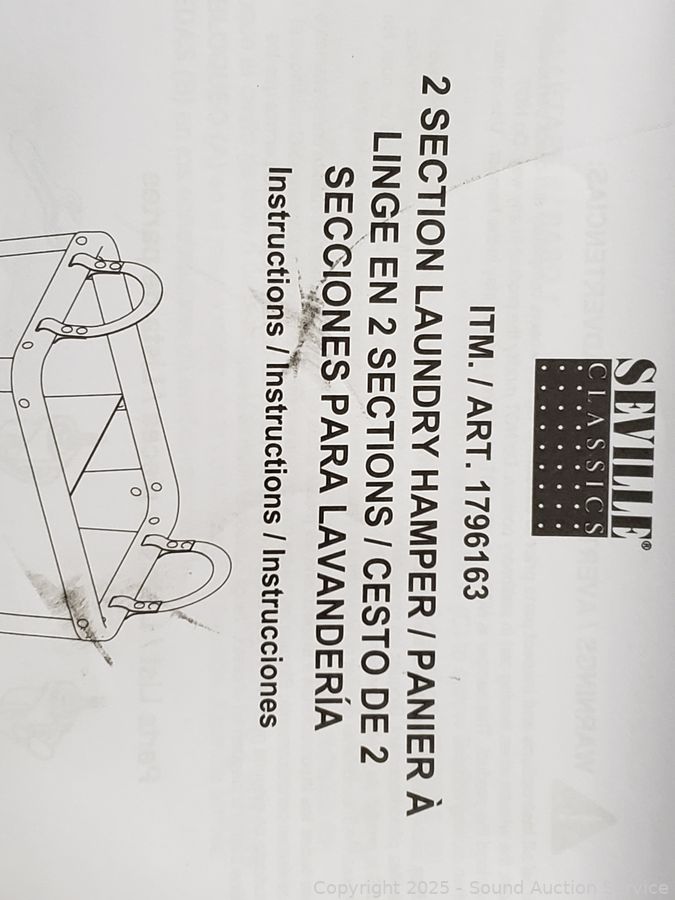 Lot #0038: Seville Classics 2-Section Rolling Laundry Hamper