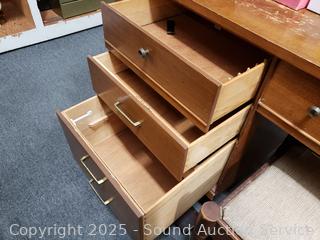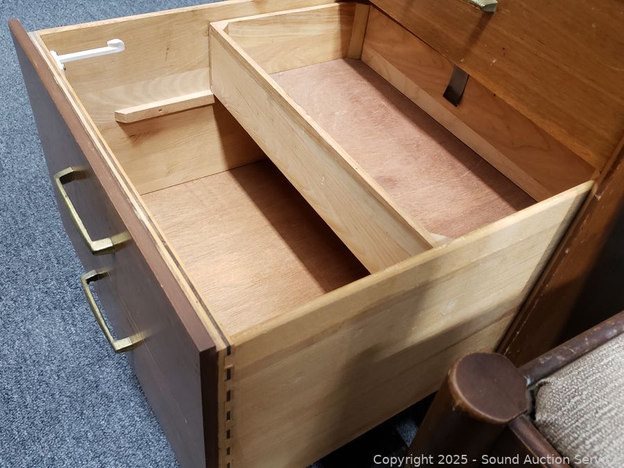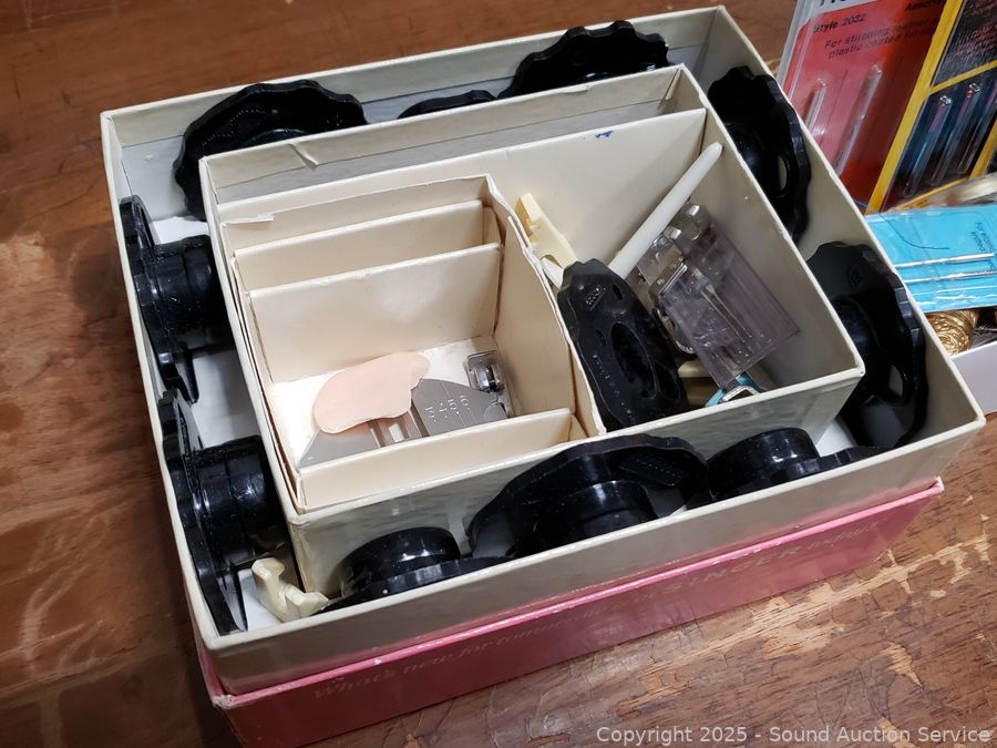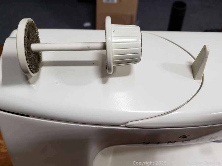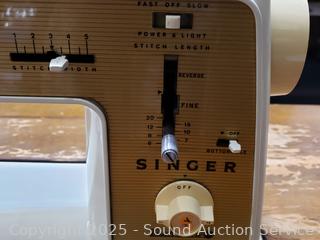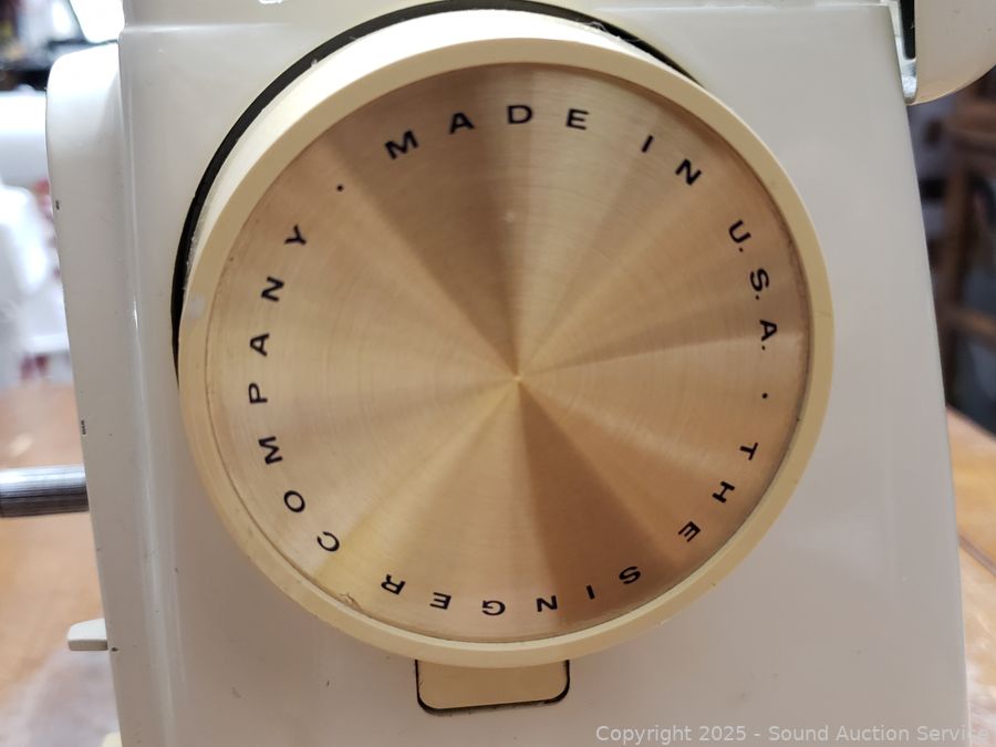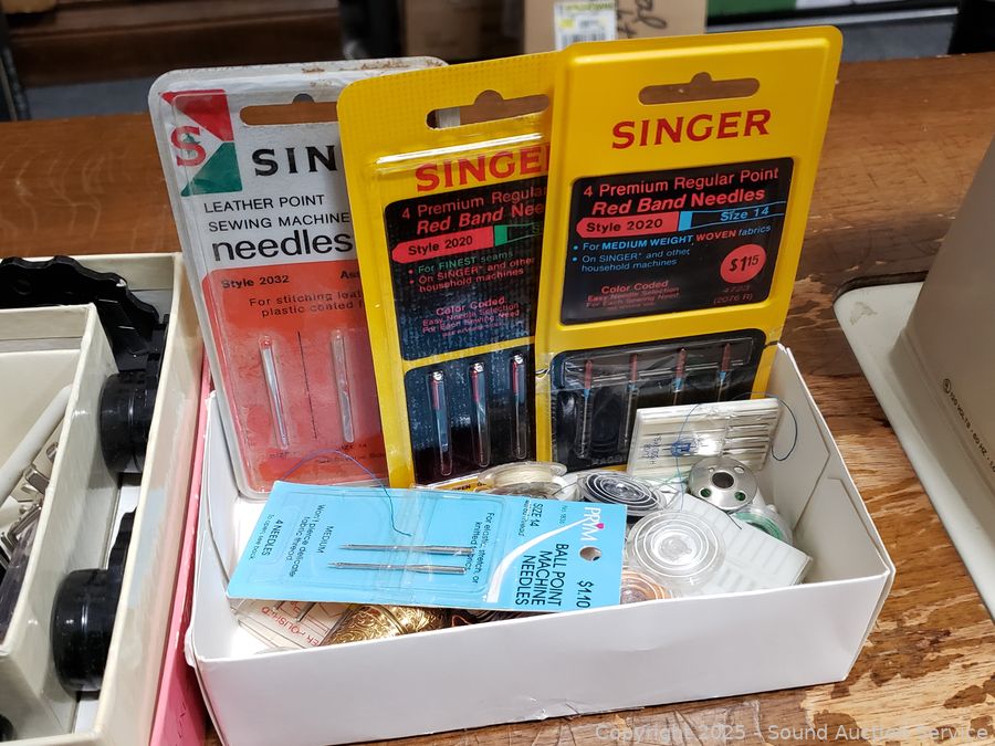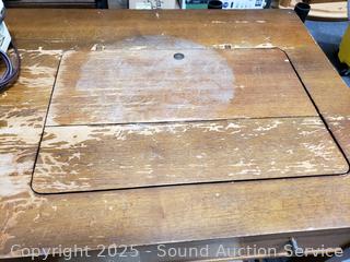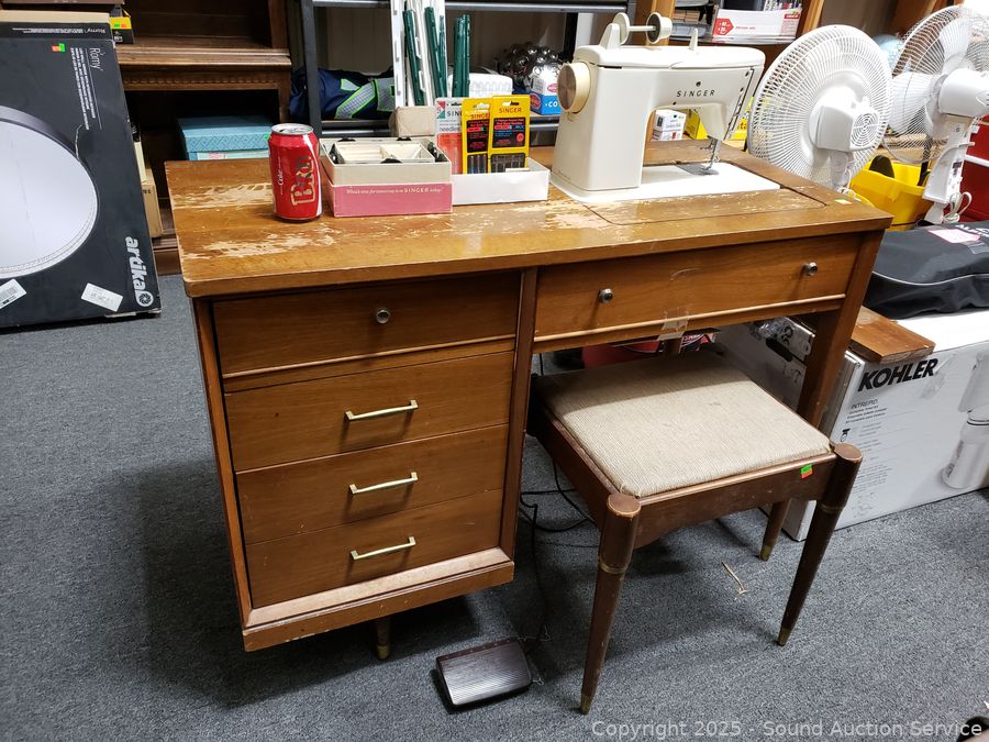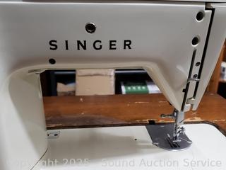 Lot #0042: Singer Sewing Machine w/Cabinet, Stool & Accessories