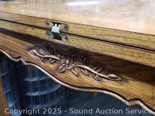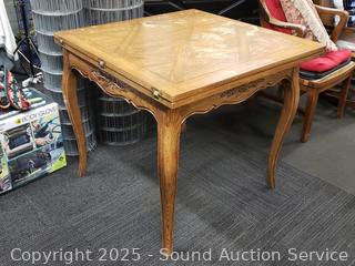 Top slides the folds over. Approx. 29.25" H x 34" x 34" to 68". Various scuffs, wear to finish.