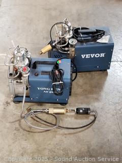 Vevor & Yong Heng Air Pumps, Unknown condition, digital screen on one is on even when off, turns on for a second then shuts off, the other pops the breaker, unable to test. As is.