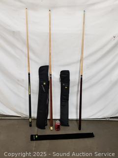 Lot #0235: 3 Pool Cues w/Soft Cases