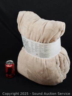 Lot #0263: Berkshire Queen Beige Plush Blanket