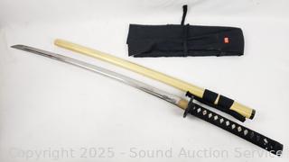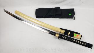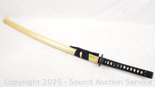 Very sharp! Comes with wood scabbard & cloth cover. 39.5" overall length, 28" blade.