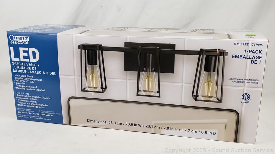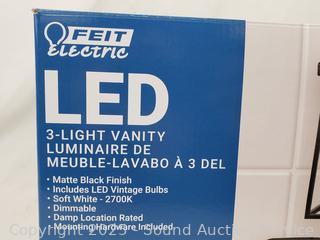 Lot #0204: Feit LED Matte Black 3-Light Vanity