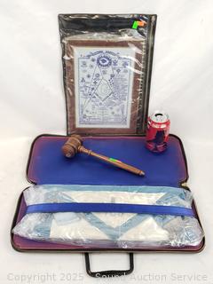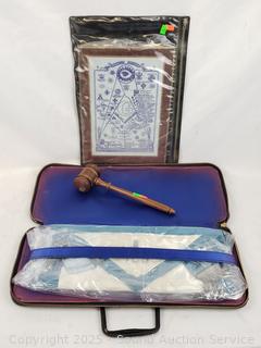Lot #0152: Masonic Apron, Structure of Freemason Sheet & Gavel