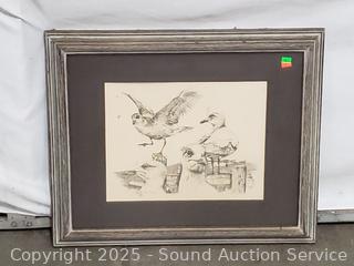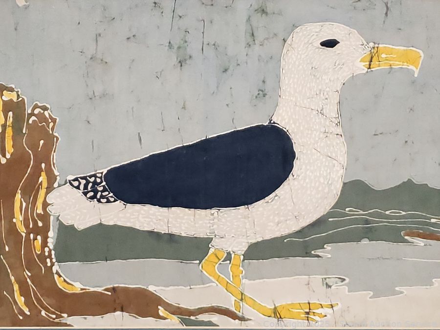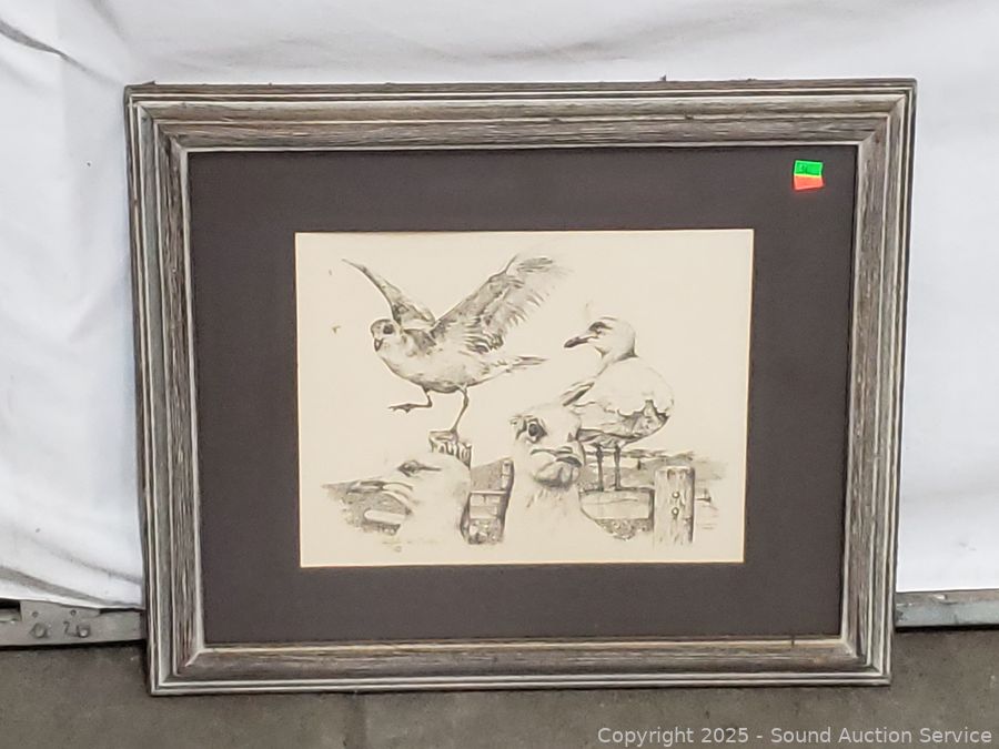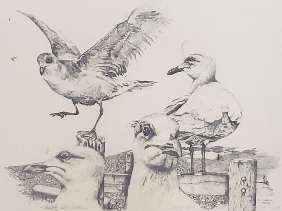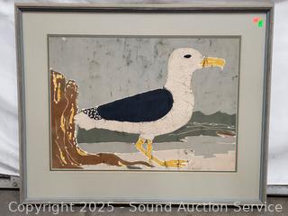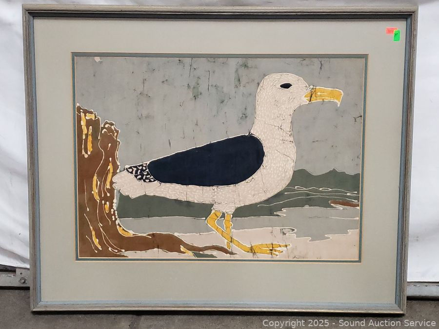 Lot #0054: Original Seagull Silk Painting & Signed Lithograph Sketch
