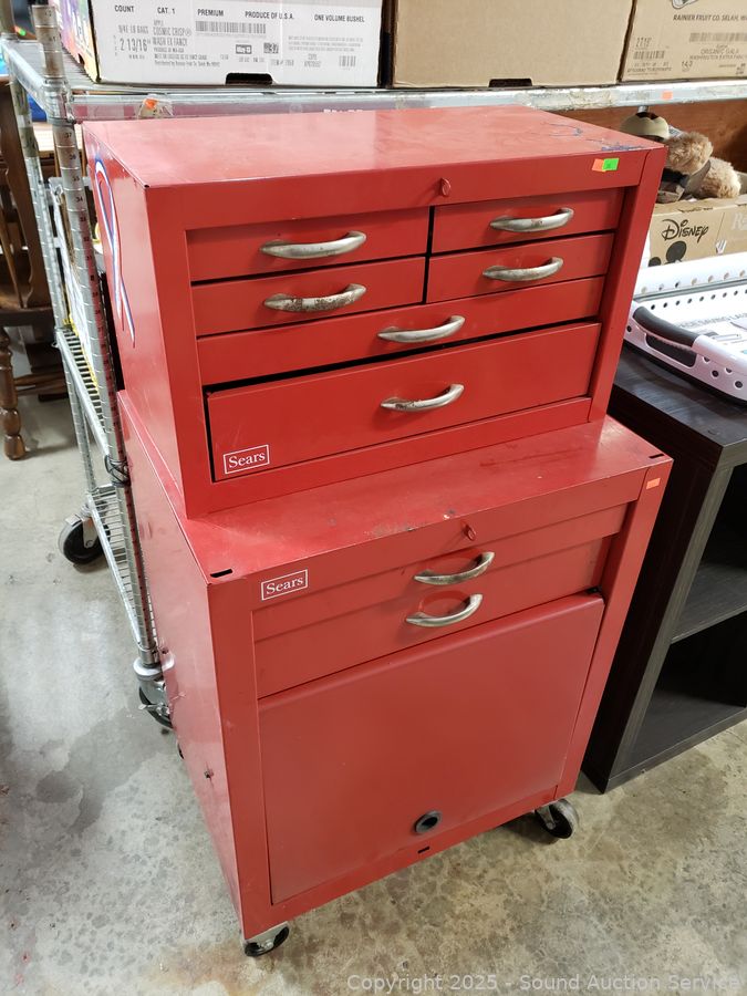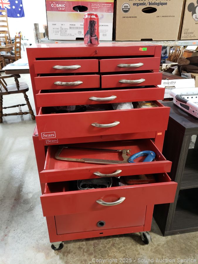Lot #0068: Red Steel Sears 8-Drawer Rolling Tool Chest